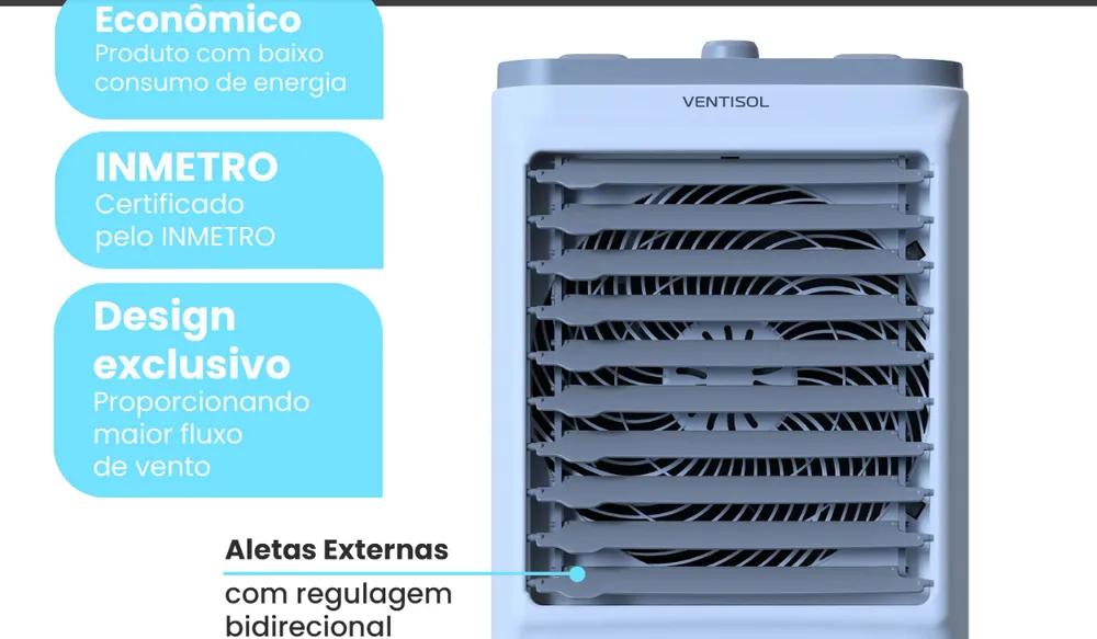 Climatizador de Ar Ventisol CLIN 16. Possui tanque de água de 16 litros, 3 velocidades de ventilação, swing automático e controle mecânico. Intenso fluxo de ar e vasta área climatizada. Produto amigável ao meio ambiente. Fácil manutenção e fácil de limpar. Informações técnicas