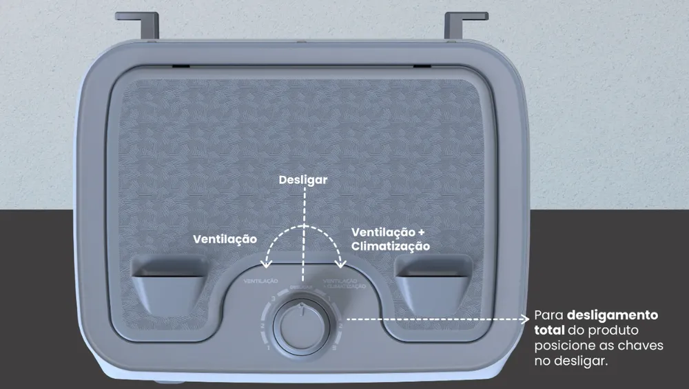 Modos de operação: Climatizar (liga/desliga), Oscilar (liga/desliga)