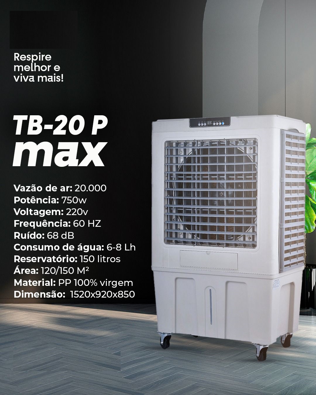 Procurando uma solução eficiente para climatizar grandes ambientes? O Climatizador Evaporativo Portátil Idealbrisa é a escolha ideal para garantir conforto e qualidade do ar em espaços de até 150 m². Com uma vazão impressionante de 20.000 m³/h e um reservatório de 150 litros, esse modelo oferece desempenho excepcional para resfriar sua área com baixo consumo de energia.