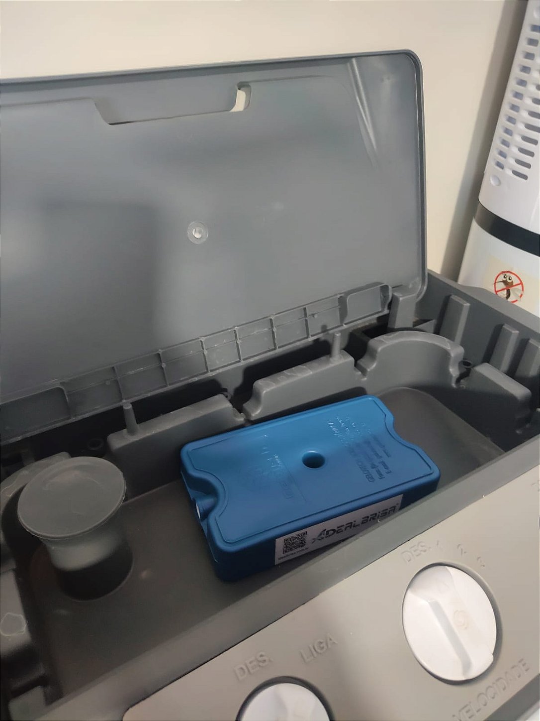 Após congelado, coloque no reservatório superior do climatizador