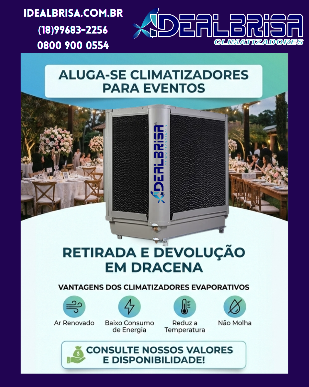 O Climatizador Evaporativo IDEAL 60 é a solução ideal para garantir conforto térmico em eventos, festas e ambientes amplos, mesmo nos dias mais quentes. Robusto, eficiente e econômico, é recomendado para áreas de até 400 m², proporcionando ar renovado e agradável para seus convidados.